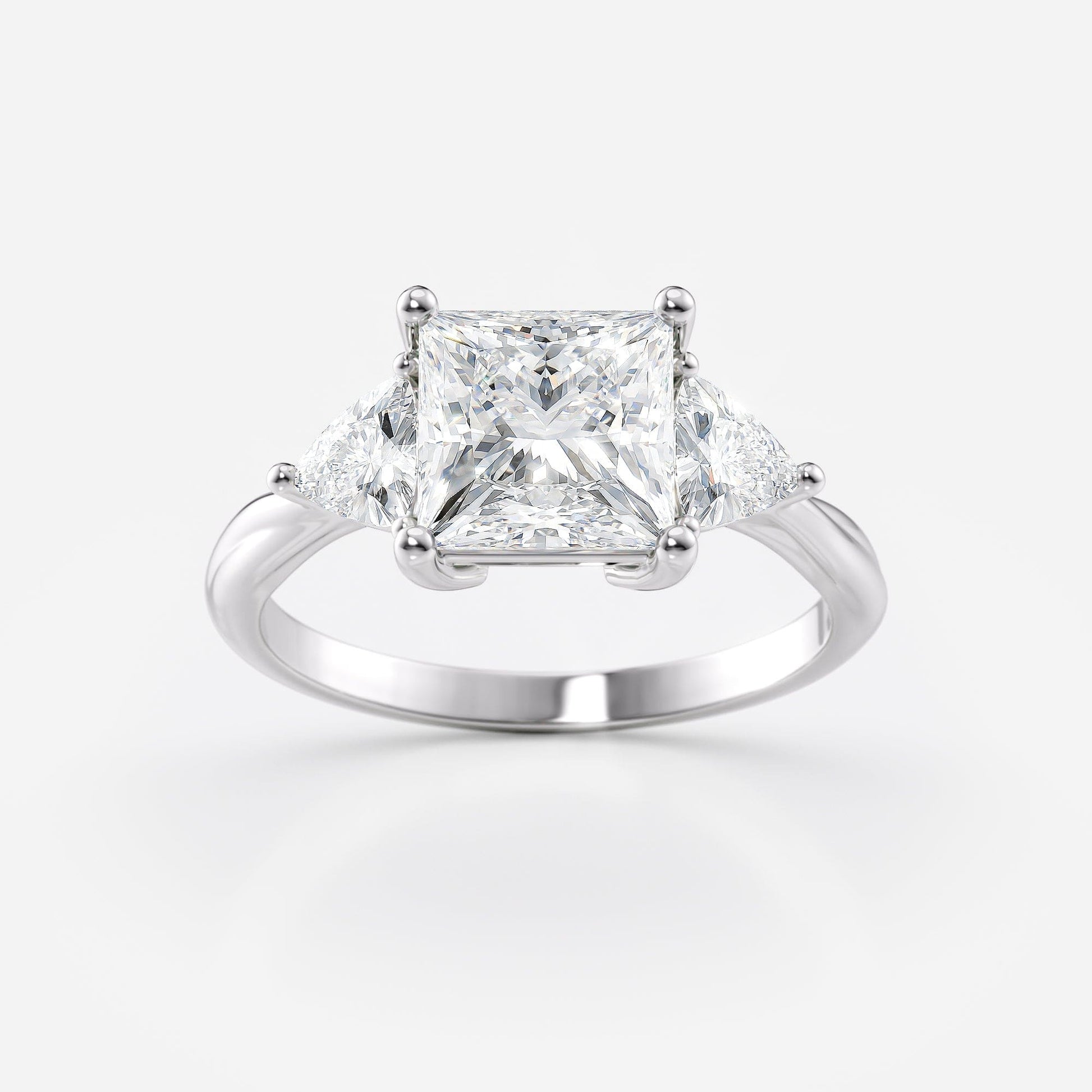 ✦ Cherish your love story with this captivating Three Stone ring with Double Prong, centered around a 2 CT Princess Moissanite that shimmers with brilliance.