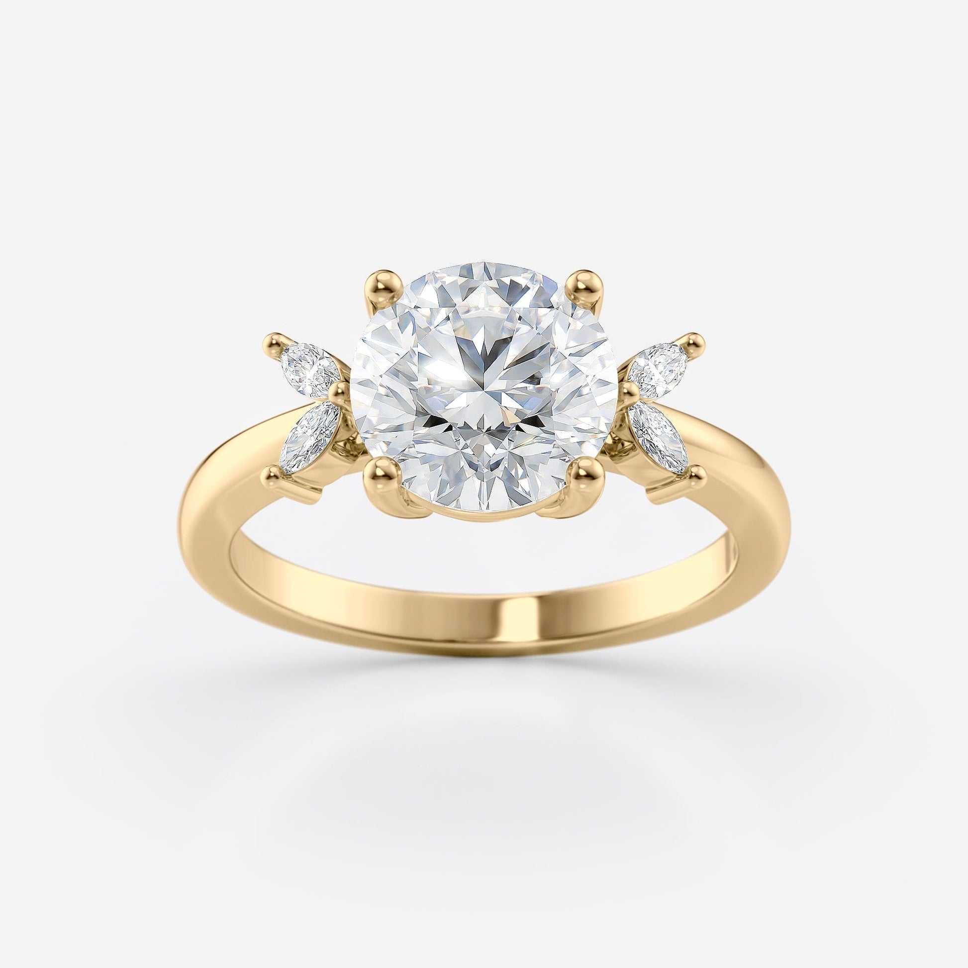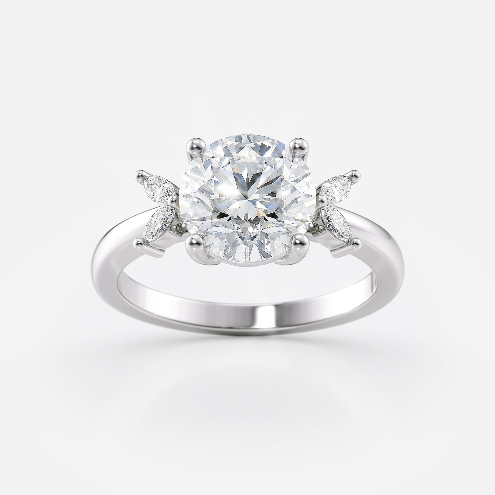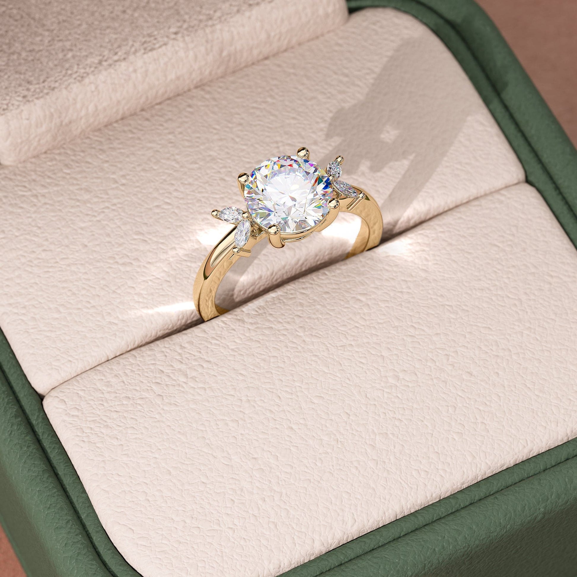 ✦ Cherish your love story with this captivating Five Stone Cluster ring, centered around a 2 CT Round Moissanite that shimmers with brilliance.