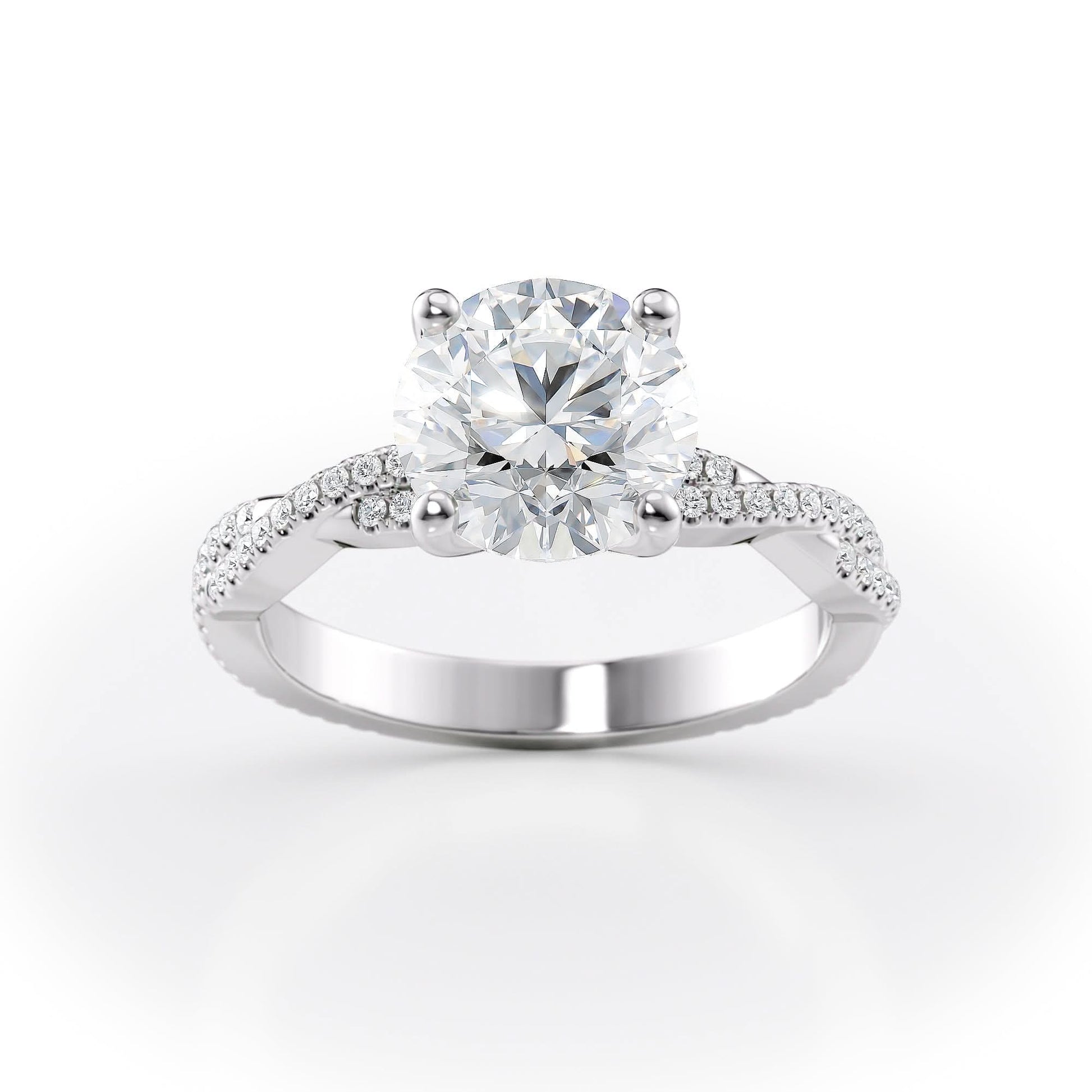 2 CT Round Cut Twisted Pave Moissanite Engagement Ring