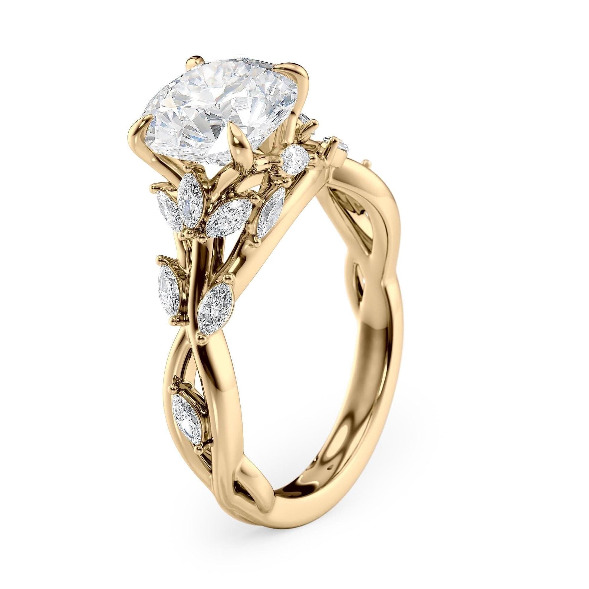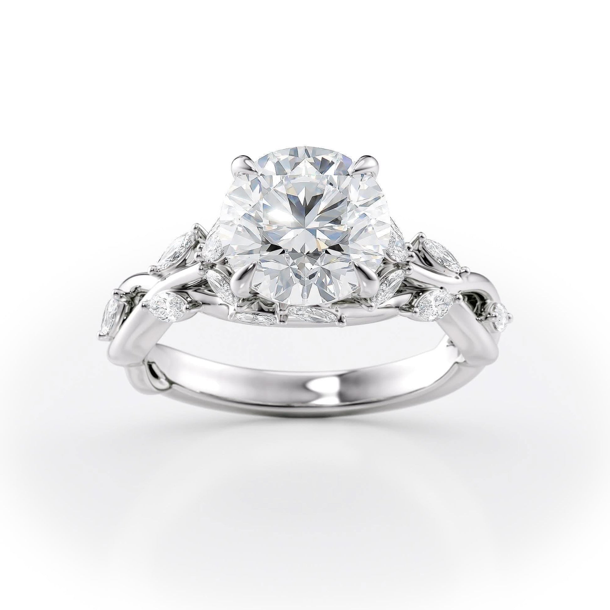 2 CT Round Cut Twisted Vine Moissanite Engagement Ring
