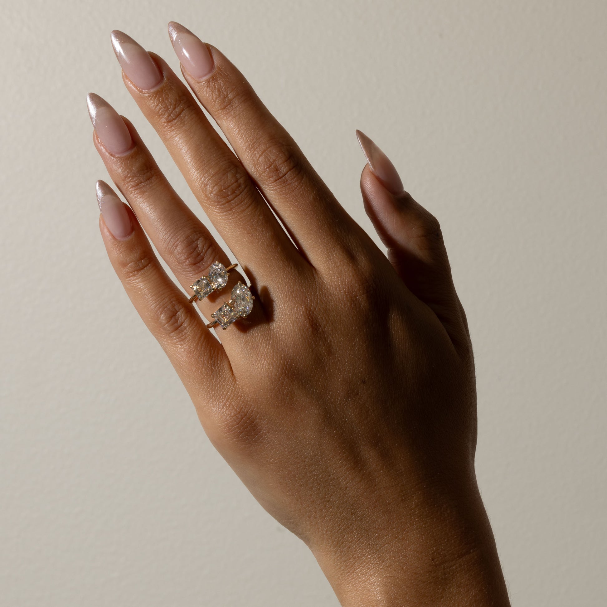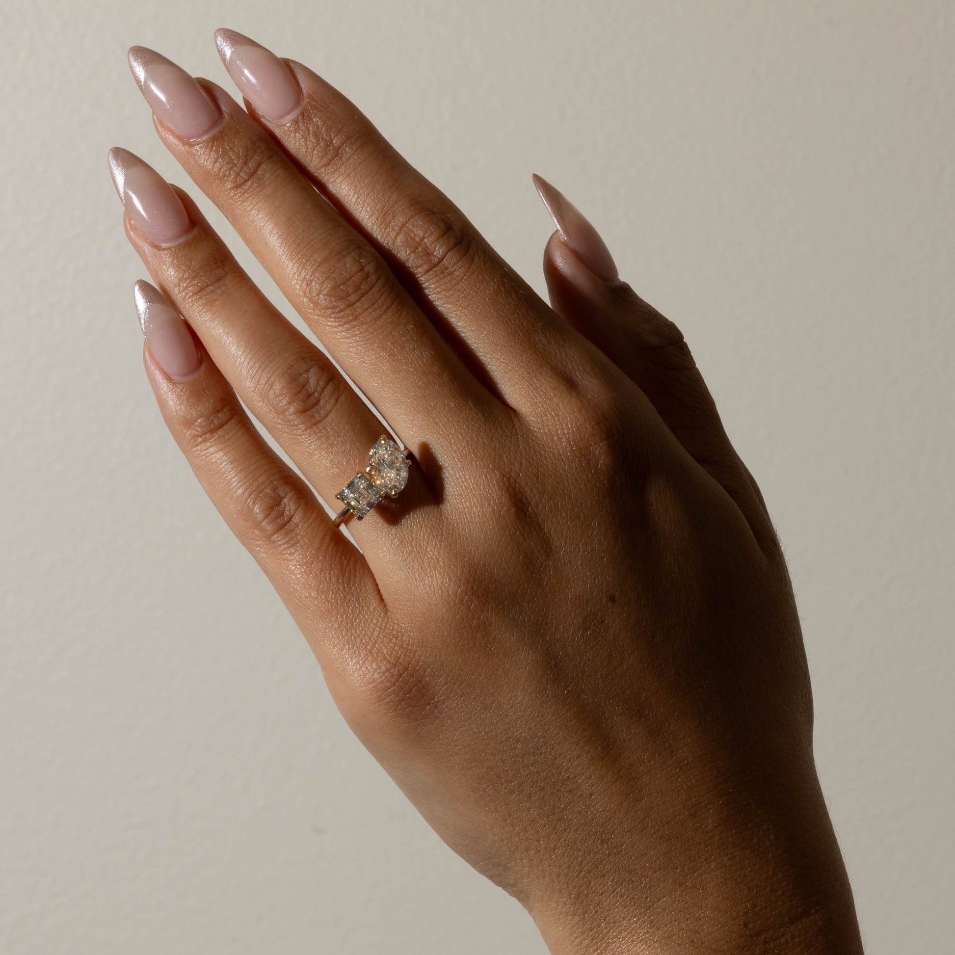 ✦ The Ring Displayed in the Image Highlights a 3.7 TCW Oval & Asscher Cut Lab grown Diamond Two Stone Engagement Ring.