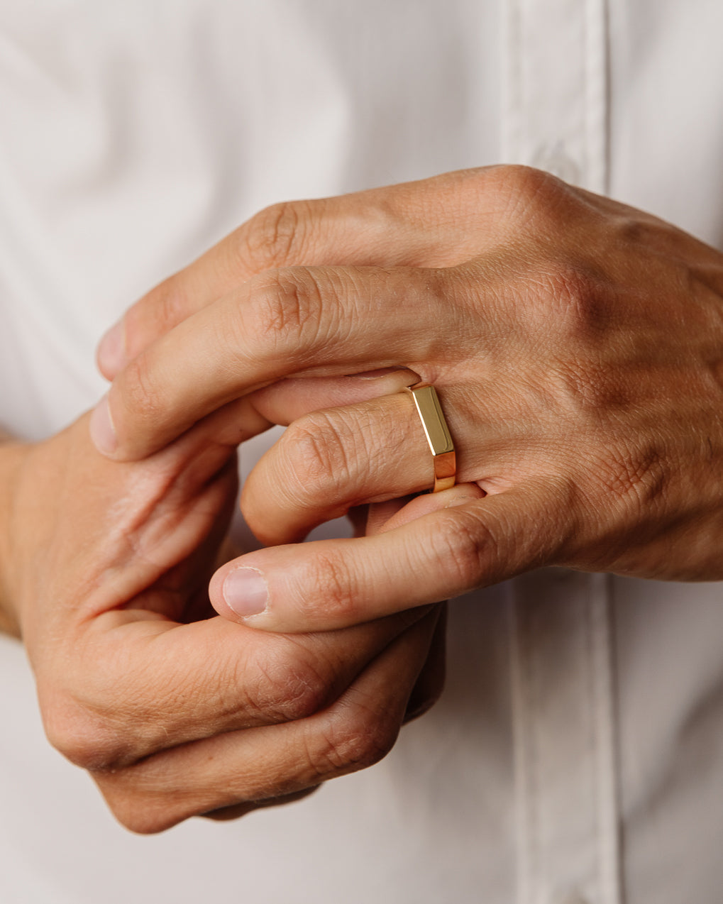 ✦ The Band Displayed in the Image Highlights a Signet Slim Rectangular Wedding Band For Men.