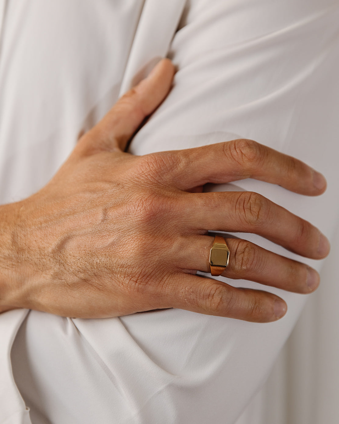 ✦ The Band Displayed in the Image Highlights a Signet Square Wedding Band For Men.